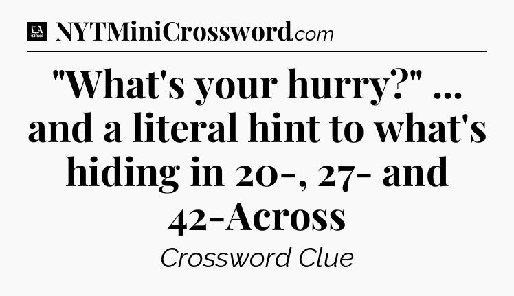 The clue “”What’s your hurry?” … and a literal hint to what’s hiding in 20-, 27- and 42-Across” most recently appeared in a LA Times Crossword on February 25, 2019.