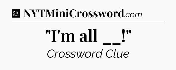 The clue “”I’m all __!”” most recently appeared in a LA Times Crossword on February 26, 2025.