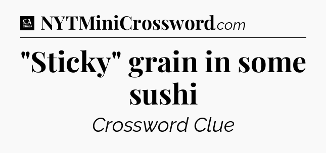 The clue “”Sticky” grain in some sushi” most recently appeared in a LA Times Crossword on February 28, 2023.