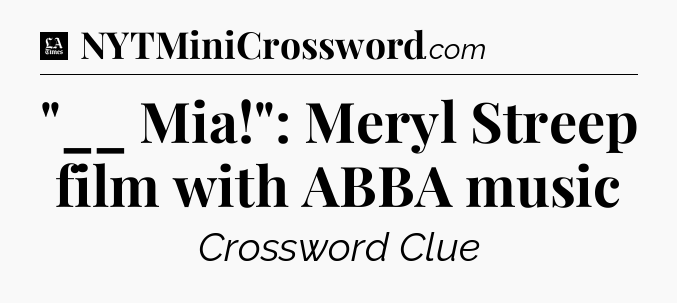 The clue “”__ Mia!”: Meryl Streep film with ABBA music” most recently appeared in a LA Times Crossword on February 5, 2024.