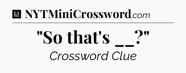 The clue “”So that’s __?”” most recently appeared in a LA Times Crossword on February 5, 2025.