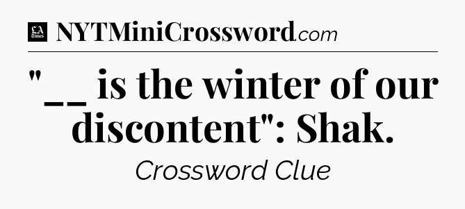 The clue “”__ is the winter of our discontent”: Shak” most recently appeared in a LA Times Crossword on February 8, 2019.