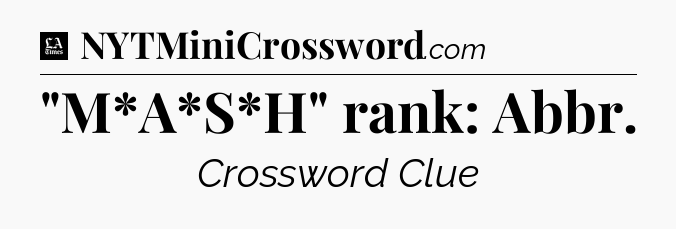The clue “”M*A*S*H” rank: Abbr” most recently appeared in a LA Times Crossword on February 9, 2018.