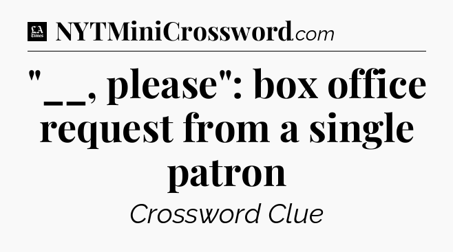 The Answer for “__, please”: box office request from a single patron – LA Times Crossword Clue Solution is: