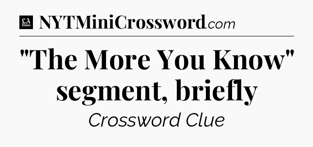 The clue “”The More You Know” segment, briefly” most recently appeared in a LA Times Crossword on March 16, 2019.