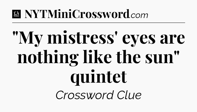 The clue “”My mistress’ eyes are nothing like the sun” quintet” most recently appeared in a LA Times Crossword on March 16, 2023.