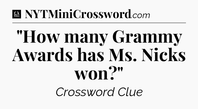 The clue “”How many Grammy Awards has Ms. Nicks won?”” most recently appeared in a LA Times Crossword on March 16, 2025.