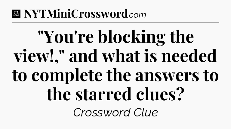 The clue “”You’re blocking the view!,” and what is needed to complete the answers to the starred clues” most recently appeared in a LA Times Crossword on March 17, 2023.