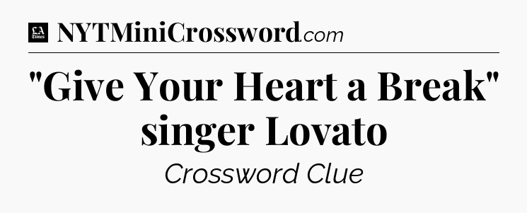 The clue “”Give Your Heart a Break” singer Lovato” most recently appeared in a LA Times Crossword on March 19, 2022.