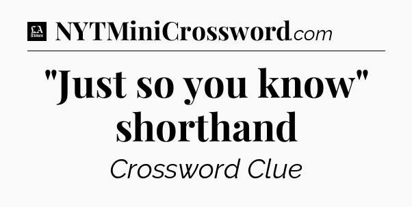 The Answer for “Just so you know” shorthand – LA Times Crossword Clue Solution is: