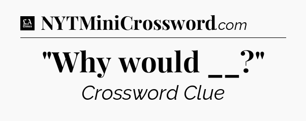The clue “”Why would __?”” most recently appeared in a LA Times Crossword on March 20, 2018.