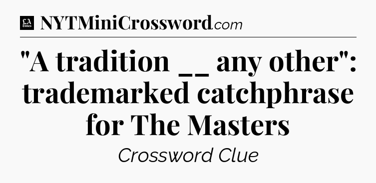 “”A tradition __ any other”: trademarked catchphrase for The Masters” LA Times Crossword Clue: Frequently Asked Questions