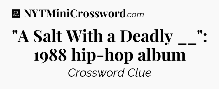 The clue “”A Salt With a Deadly __”: 1988 hip-hop album” most recently appeared in a LA Times Crossword on March 20, 2023.