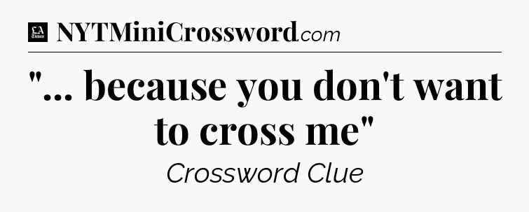 The clue “”… because you don’t want to cross me”” most recently appeared in a LA Times Crossword on March 23, 2023.