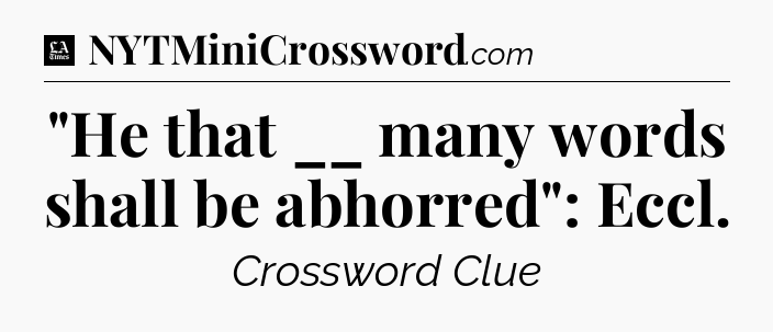 The clue “”He that __ many words shall be abhorred”: Eccl” most recently appeared in a LA Times Crossword on March 24, 2019.