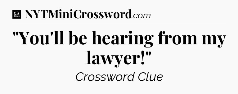 The clue “”You’ll be hearing from my lawyer!”” most recently appeared in a LA Times Crossword on March 24, 2023.