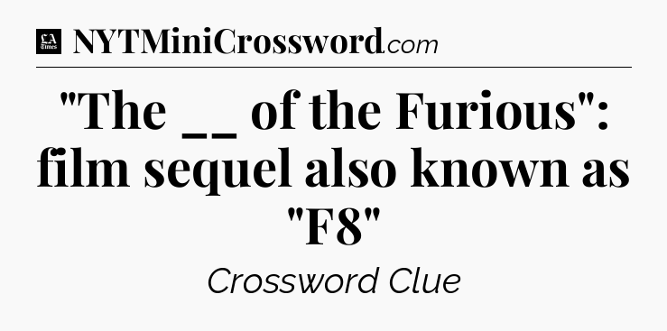 The clue “”The __ of the Furious”: film sequel also known as “F8″” most recently appeared in a LA Times Crossword on March 25, 2024.