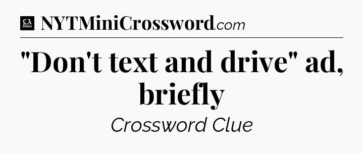 The clue “”Don’t text and drive” ad, briefly” most recently appeared in a LA Times Crossword on March 26, 2019.