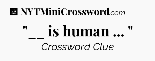 The clue “”__ is human … “” most recently appeared in a LA Times Crossword on March 27, 2020.