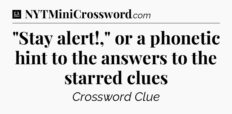 The clue “”Stay alert!,” or a phonetic hint to the answers to the starred clues” most recently appeared in a LA Times Crossword on March 3, 2023.