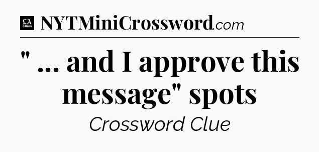 The clue “” … and I approve this message” spots” most recently appeared in a LA Times Crossword on March 31, 2024.