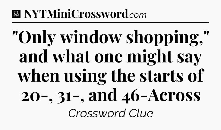 The clue “”Only window shopping,” and what one might say when using the starts of 20-, 31-, and 46-Across” most recently appeared in a LA Times Crossword on March 31, 2025.