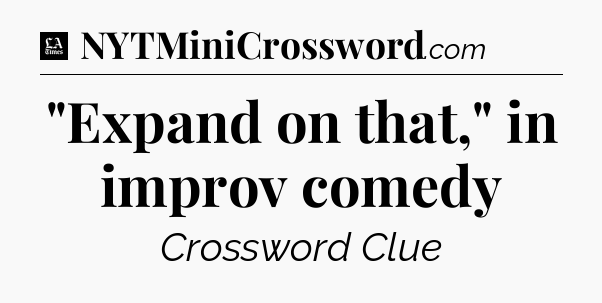 The clue “”Expand on that,” in improv comedy” most recently appeared in a LA Times Crossword on March 4, 2021.