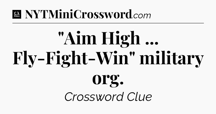 The clue “”Aim High … Fly-Fight-Win” military org” most recently appeared in a LA Times Crossword on March 7, 2018.