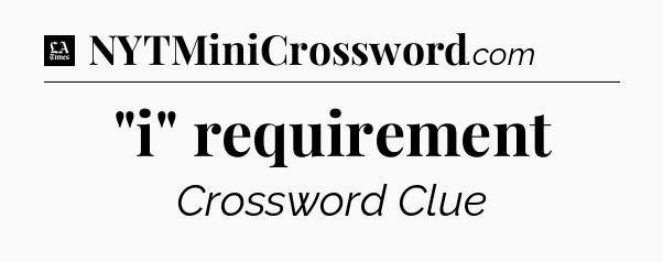 The clue “”i” requirement” most recently appeared in a LA Times Crossword on March 9, 2025.
