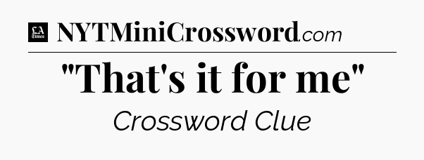 The clue “”That’s it for me”” most recently appeared in a LA Times Crossword on April 1, 2017.