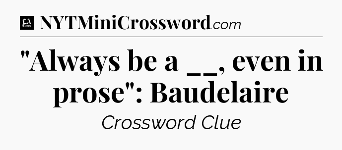 The clue “”Always be a __, even in prose”: Baudelaire” most recently appeared in a LA Times Crossword on April 11, 2018.