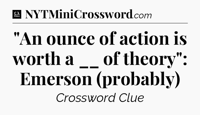 The clue “”An ounce of action is worth a __ of theory”: Emerson (probably)” most recently appeared in a LA Times Crossword on April 12, 2022.