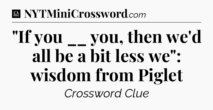 The Answer for “If you __ you, then we’d all be a bit less we”: wisdom from Piglet – LA Times Crossword Clue Solution is: