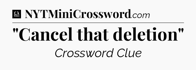 The clue “”Cancel that deletion”” most recently appeared in a LA Times Crossword on April 16, 2018.
