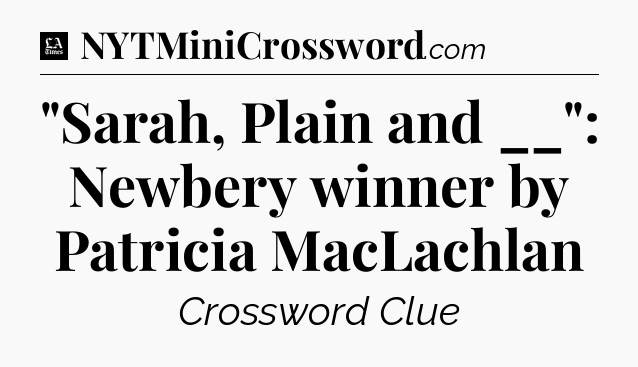 The clue “”Sarah, Plain and __”: Newbery winner by Patricia MacLachlan” most recently appeared in a LA Times Crossword on April 16, 2023.