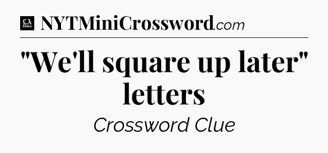 The clue “”We’ll square up later” letters” most recently appeared in a LA Times Crossword on April 16, 2023.