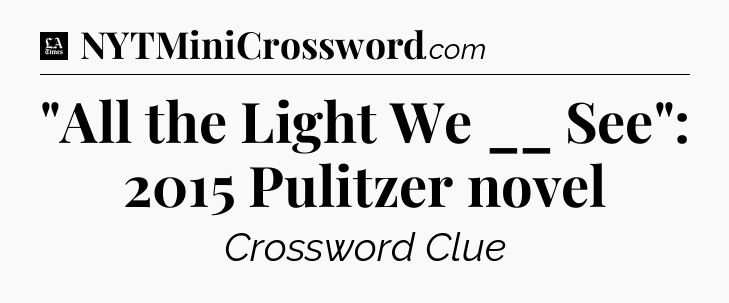 The clue “”All the Light We __ See”: 2015 Pulitzer novel” most recently appeared in a LA Times Crossword on April 19, 2018.