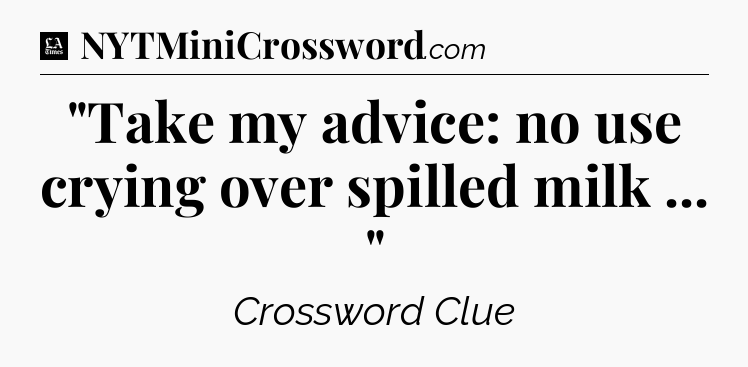 The clue “”Take my advice: no use crying over spilled milk … “” most recently appeared in a LA Times Crossword on April 2, 2021.