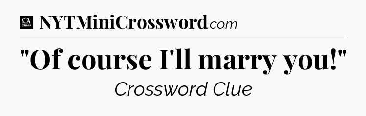 The clue “”Of course I’ll marry you!”” most recently appeared in a LA Times Crossword on April 20, 2025.