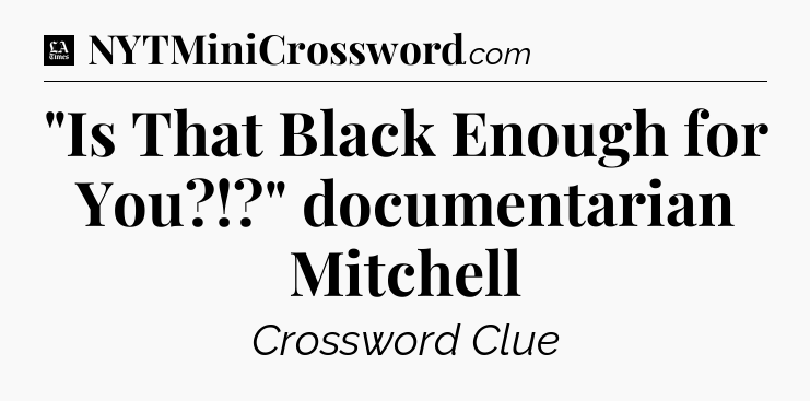 The clue “”Is That Black Enough for You?!?” documentarian Mitchell” most recently appeared in a LA Times Crossword on April 21, 2023.