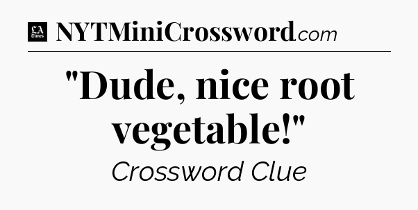 The clue “”Dude, nice root vegetable!”” most recently appeared in a LA Times Crossword on April 25, 2019.