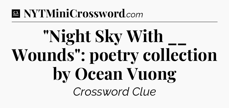 The clue “”Night Sky With __ Wounds”: poetry collection by Ocean Vuong” most recently appeared in a LA Times Crossword on April 27, 2022.