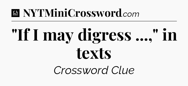 The clue “”If I may digress …,” in texts” most recently appeared in a LA Times Crossword on April 29, 2019.