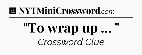 The clue “”To wrap up … “” most recently appeared in a LA Times Crossword on April 29, 2019.