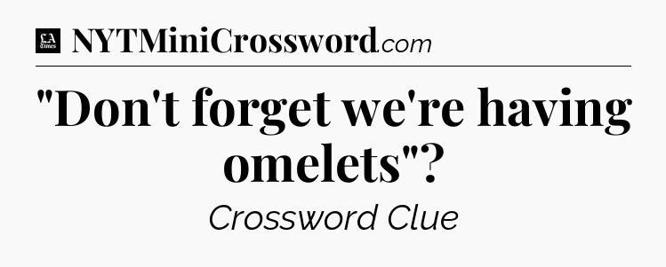 The clue “”Don’t forget we’re having omelets”” most recently appeared in a LA Times Crossword on April 5, 2020.