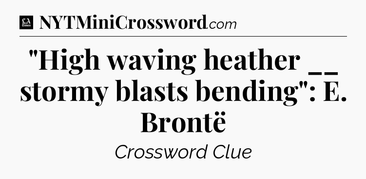 The clue “”High waving heather __ stormy blasts bending”: E. Brontë” most recently appeared in a LA Times Crossword on April 5, 2022.