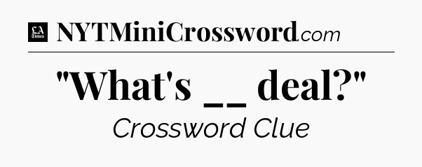 The clue “”What’s __ deal?”” most recently appeared in a LA Times Crossword on April 5, 2025.