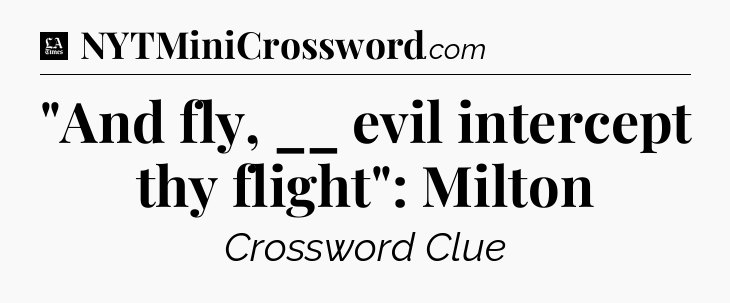 There is 1 possible answer for the crossword clue “”And fly, __ evil intercept thy flight”: Milton”.