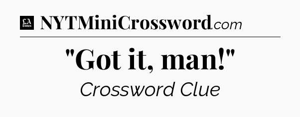 The clue “”Got it, man!”” most recently appeared in a LA Times Crossword on May 12, 2018.