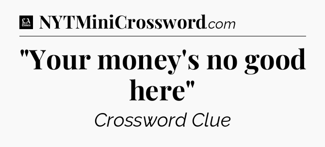 The clue “”Your money’s no good here”” most recently appeared in a LA Times Crossword on May 13, 2017.